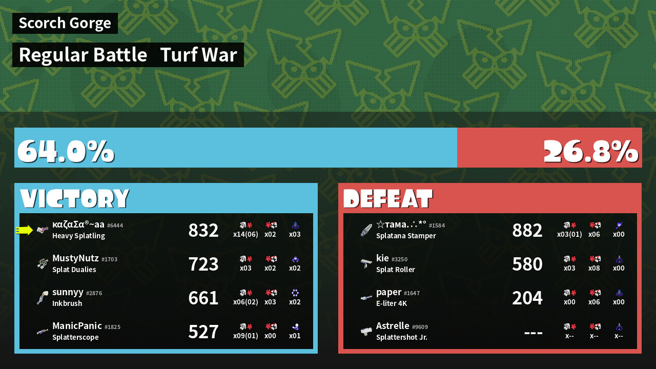 Kills / Deaths | 8 + 6 / 2 > Kill Ratio: 4.00 | ||