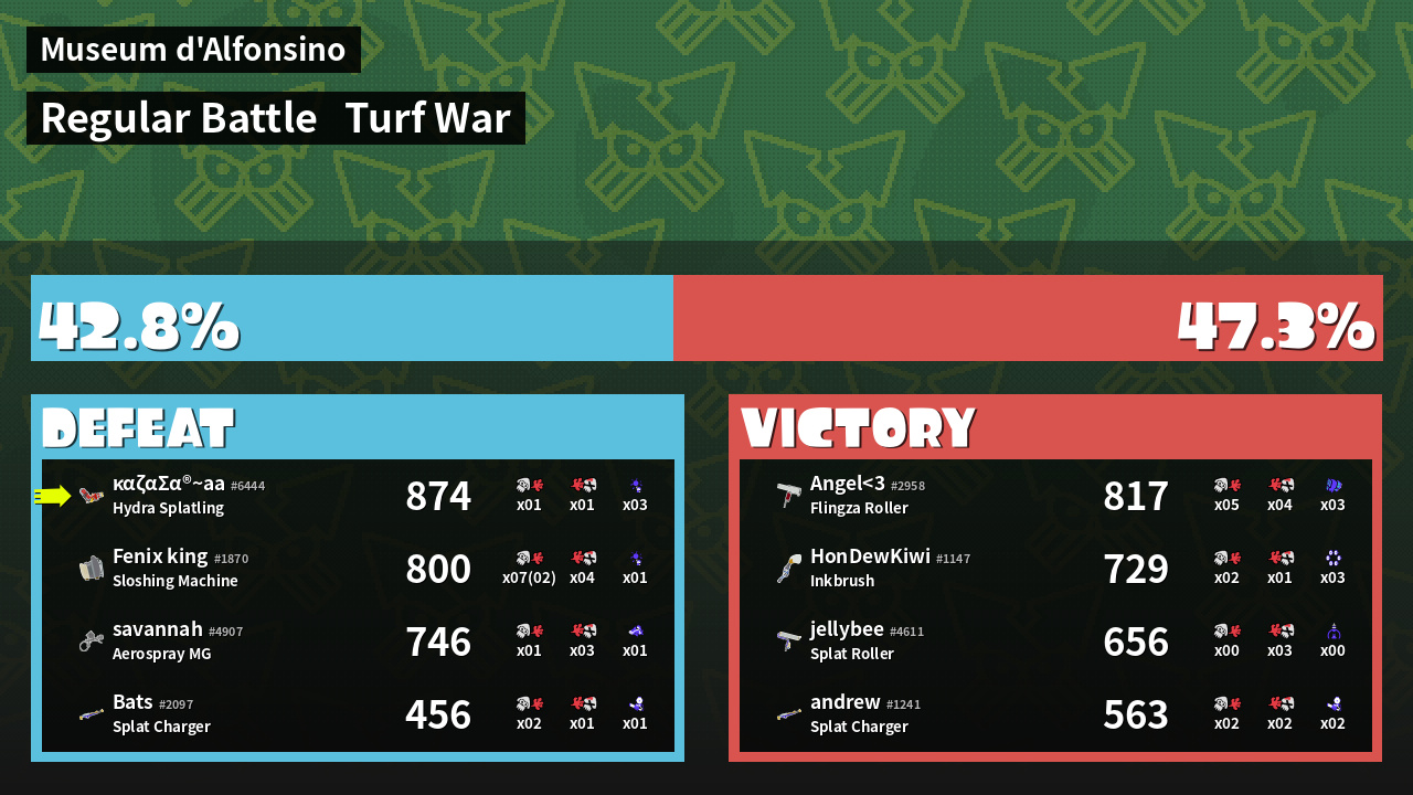 | Mode | Turf War - Regular Battle | ||