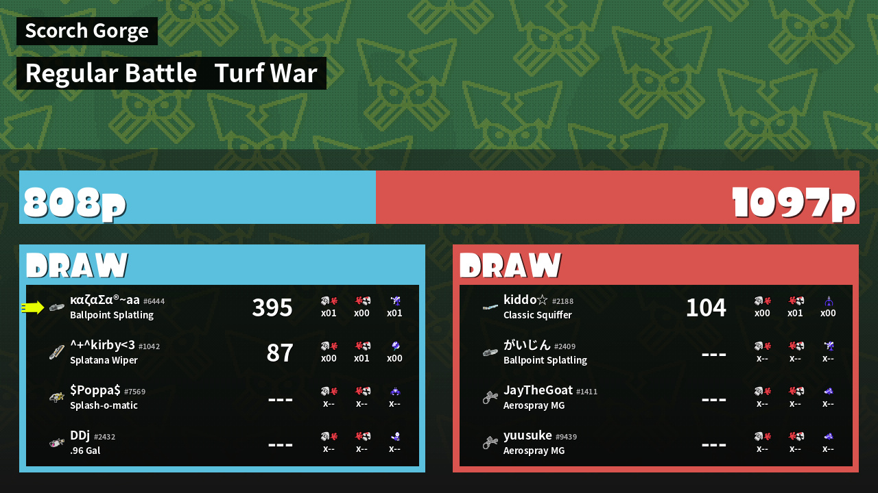 | Mode | Turf War - Regular Battle | ||