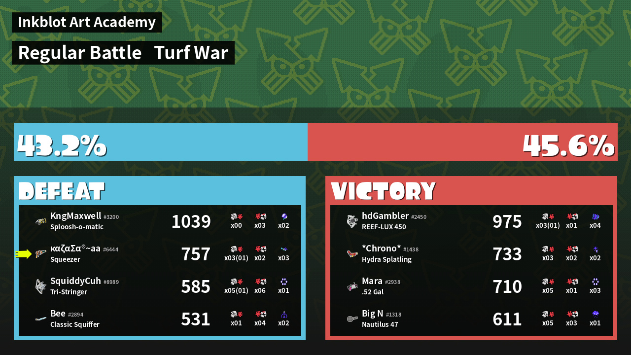 | Medals | #1 Splat Assister #1 Ink Consumer #1 Trizooka User | ||