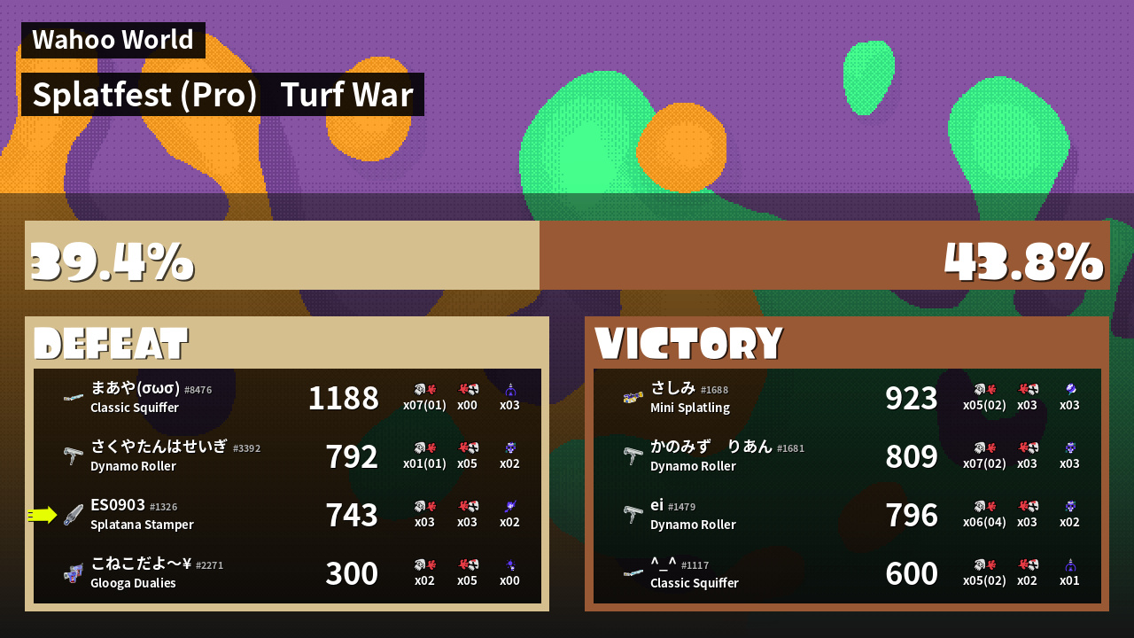 | Mode | Turf War - Splatfest (Pro) | ||