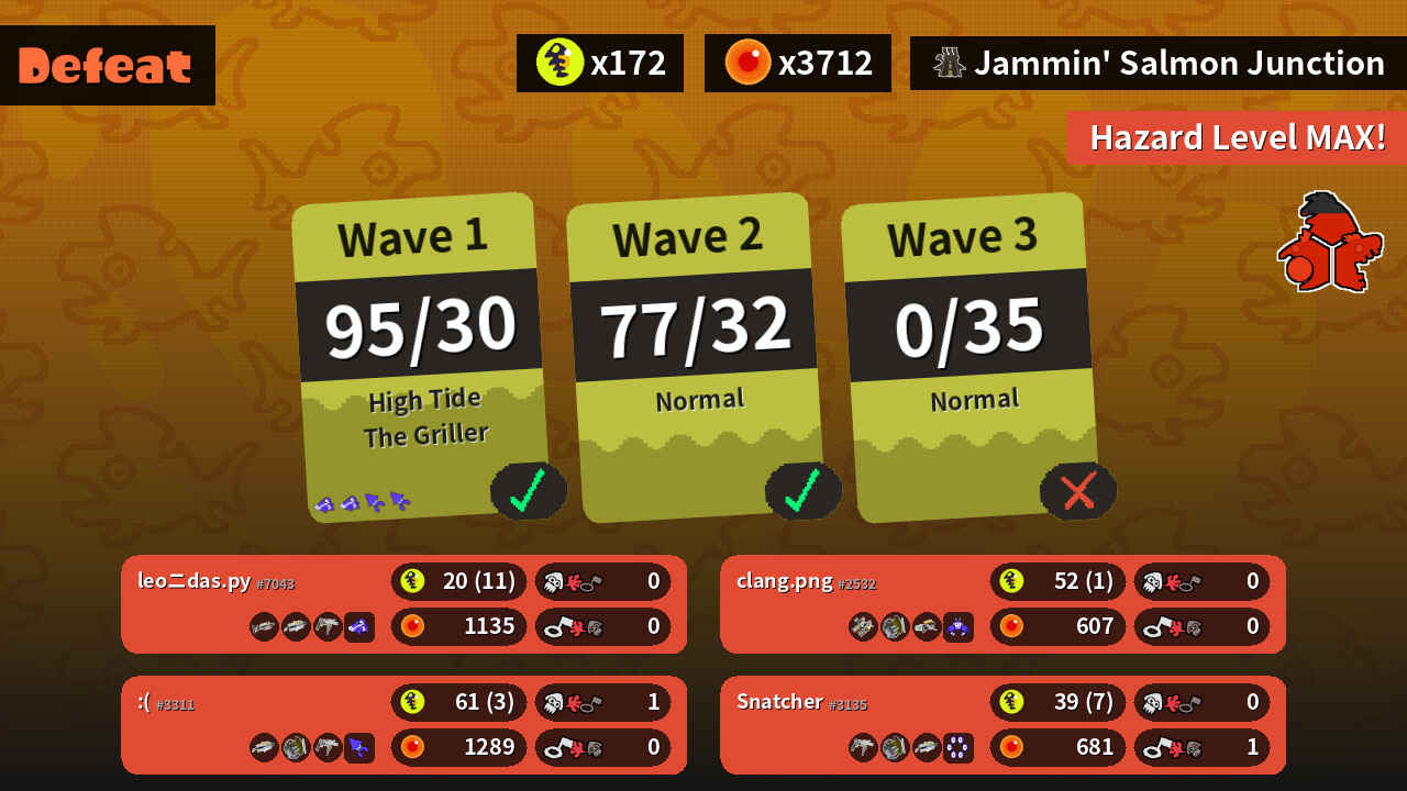 | Weapons | Grizzco Charger Grizzco Brella Grizzco Roller | Grizzco Brella Grizzco Slosher Grizzco Roller | Grizzco Dualies Grizzco Slosher Grizzco Blaster | Grizzco Roller Grizzco Slosher Grizzco Brella |