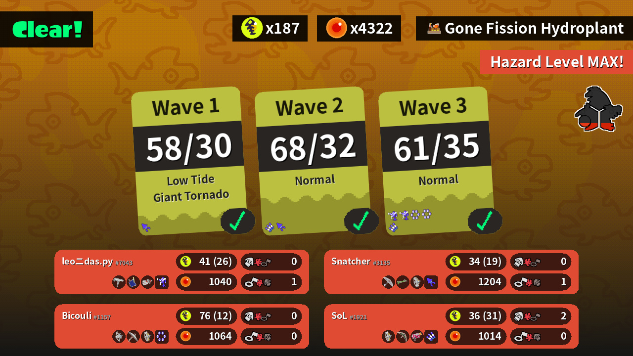 | Boss Salmonid | 15 | 17 | 14 | 14 |