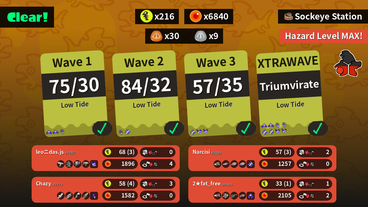 | Weapons | Big Swig Roller Wellstring V Clash Blaster Grizzco Roller | Mint Decavitator Dark Tetra Dualies Inkbrush Grizzco Splatana | Grizzco Blaster Splattershot Pro Grizzco Brella Grizzco Brella | Blaster Grizzco Dualies Jet Squelcher Grizzco Charger |