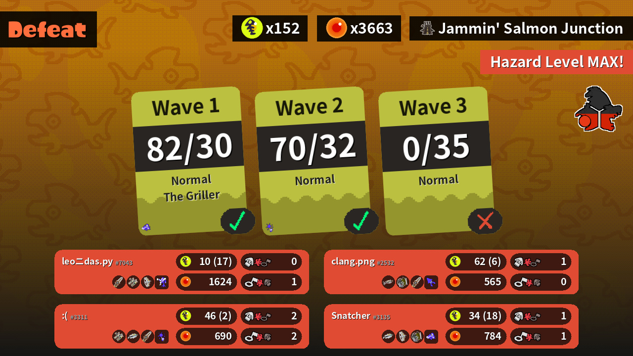 | Weapons | Grizzco Splatana Grizzco Dualies Grizzco Stringer | Grizzco Charger Grizzco Slosher Grizzco Splatana | Grizzco Dualies Grizzco Brella Grizzco Splatana | Grizzco Brella Grizzco Stringer Grizzco Slosher |