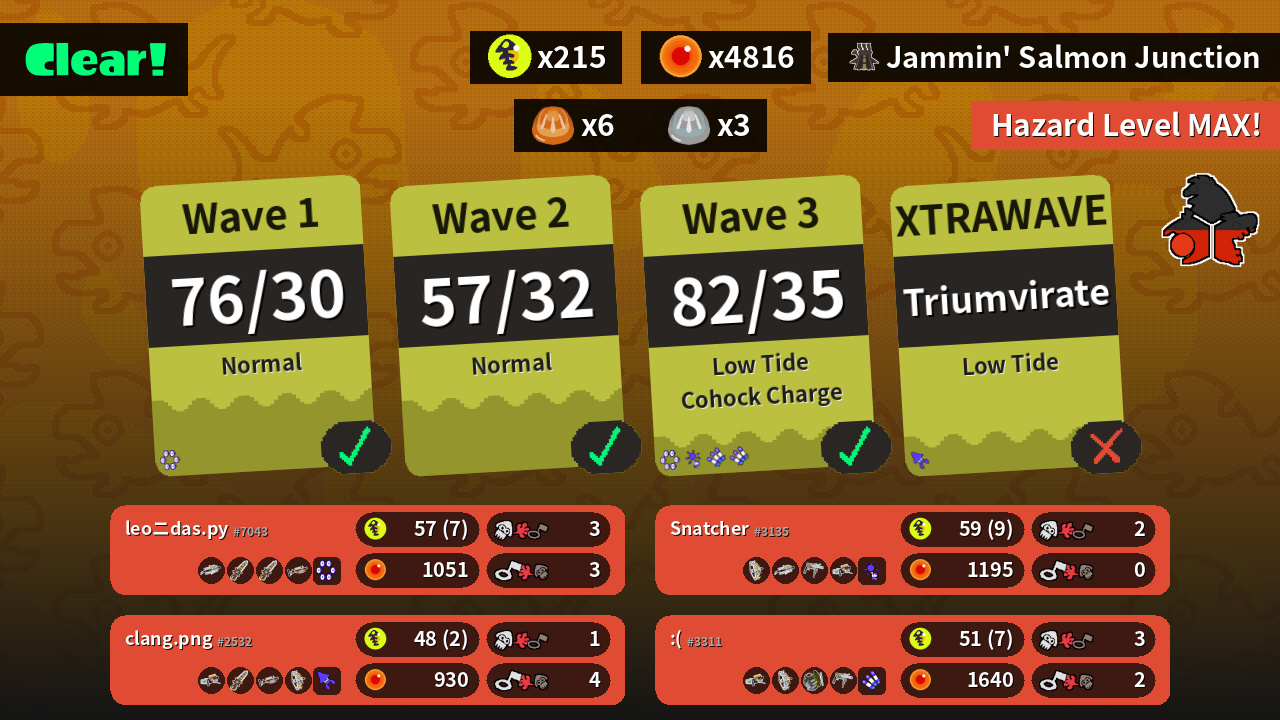 | Weapons | Grizzco Brella Grizzco Splatana Grizzco Splatana Grizzco Charger | Grizzco Stringer Grizzco Brella Grizzco Roller Grizzco Blaster | Grizzco Blaster Grizzco Stringer Grizzco Slosher Grizzco Roller | Grizzco Blaster Grizzco Splatana Grizzco Charger Grizzco Stringer |