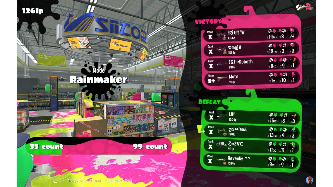 | Name | Weapon | Level | Rank | Inked | k+a/sp | k/d |