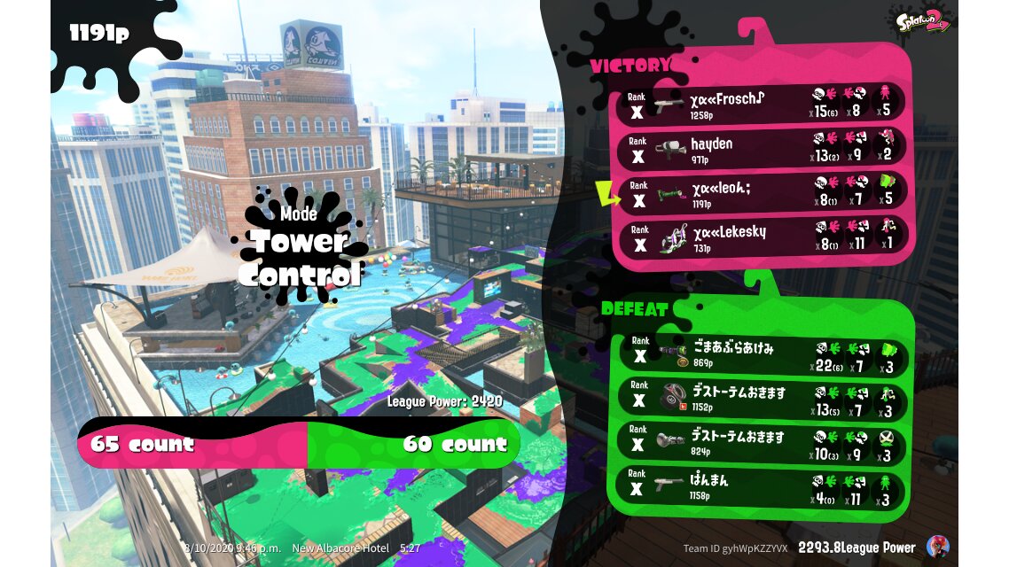| Mode | Tower Control - League Battle (Quad) | ||||||||||||||||||||||||||||