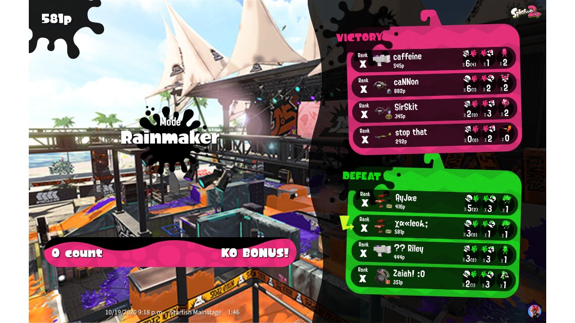 | SplatNet Battle # | 13,425 | |||||||||||||||||||||||||||||||