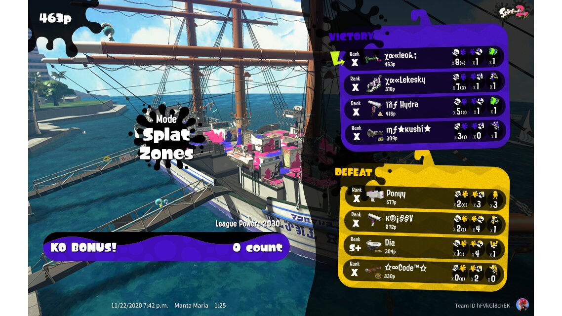 | Mode | Splat Zones - League Battle (Twin) | |||||||||||||||||||||||||||||||