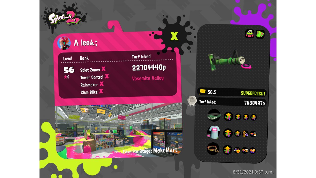 | SplatNet Battle # | 22,321 | ||||||||||||||||||||||||||||||||||