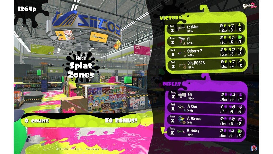 | Mode | Splat Zones - Private Battle | ||||||||||||||||||||||||||||||||||