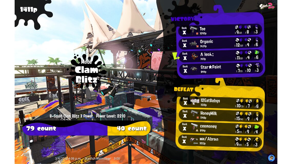 | Mode | Clam Blitz - Ranked Battle | |||||||||||||||||||||||||||||||||||||