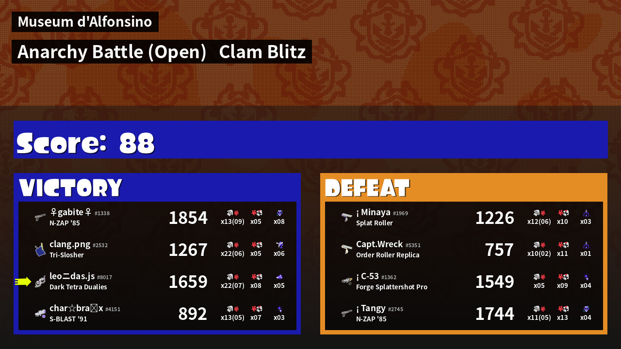 | Mode | Clam Blitz - Anarchy Battle (Open) | ||