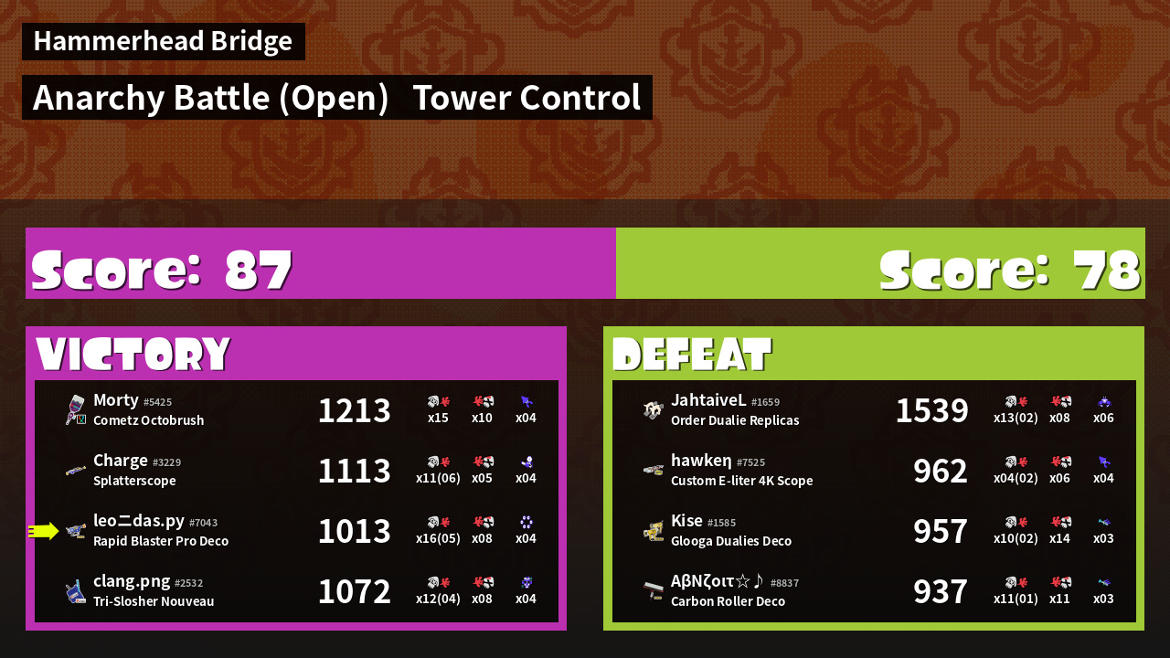 | Mode | Tower Control - Anarchy Battle (Open) | ||