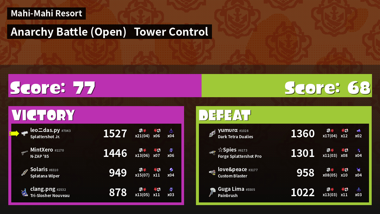 | Mode |    Tower Control -   Anarchy Battle (Open) | ||