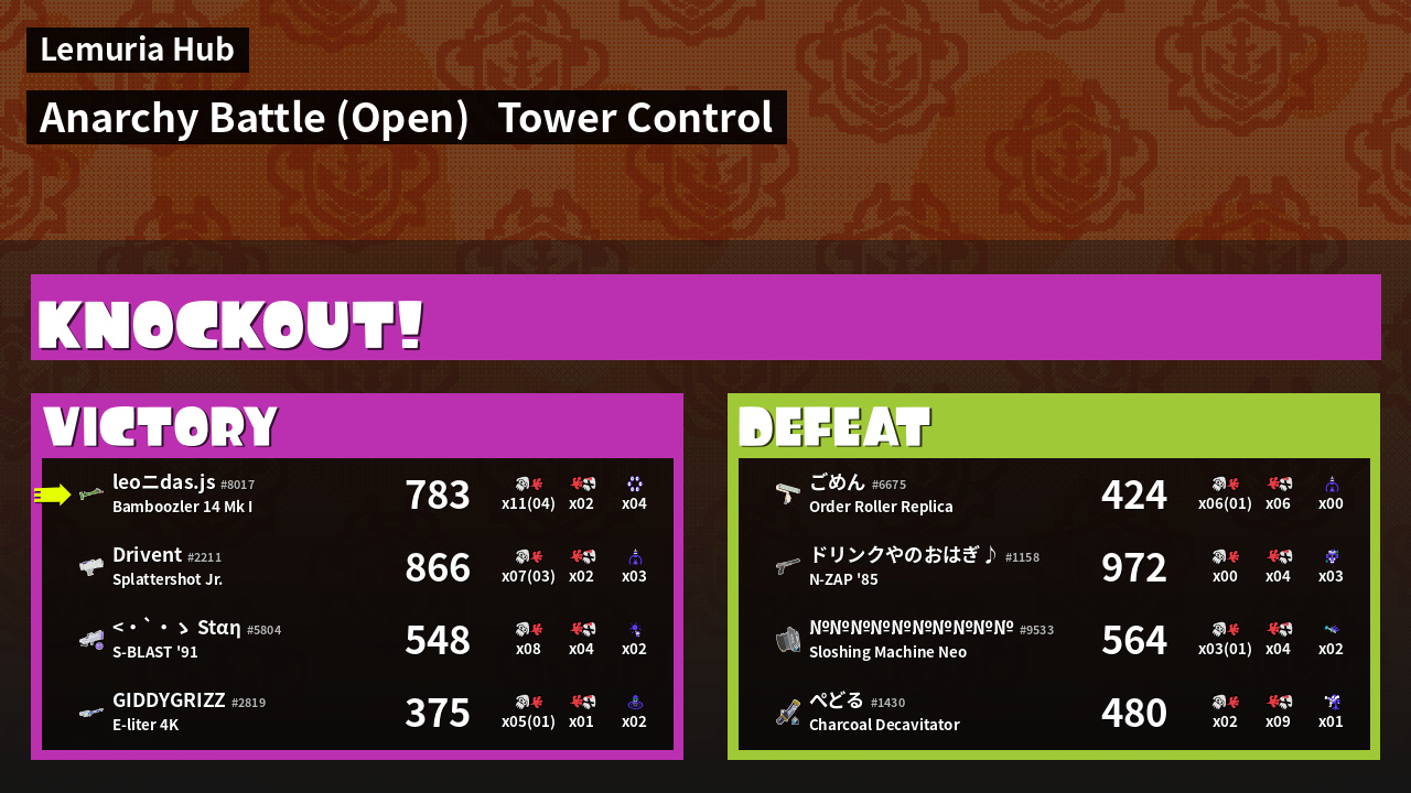 | Mode | Tower Control - Anarchy Battle (Open) | ||