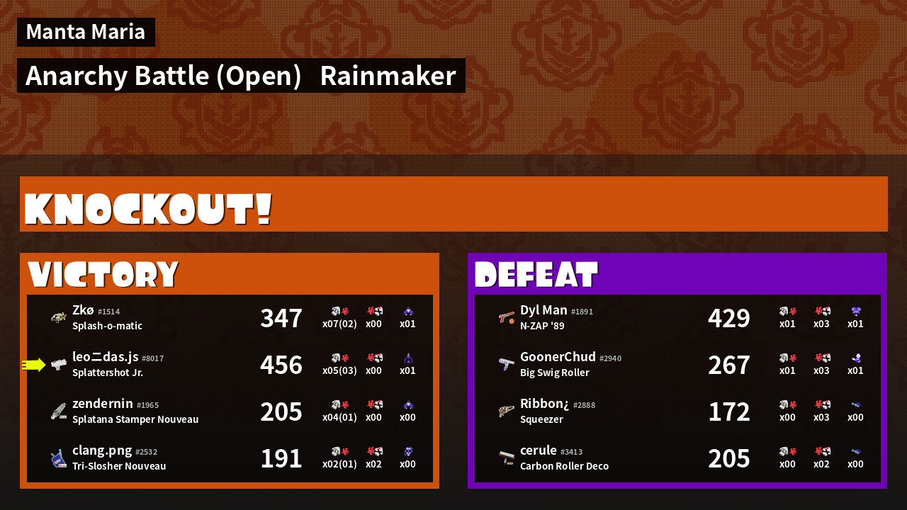 | Mode | Rainmaker - Anarchy Battle (Open) | ||