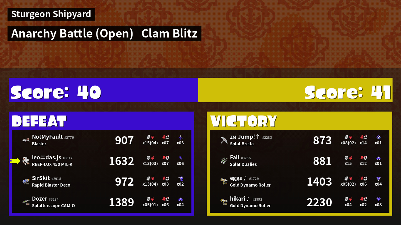 | Mode | Clam Blitz - Anarchy Battle (Open) | ||