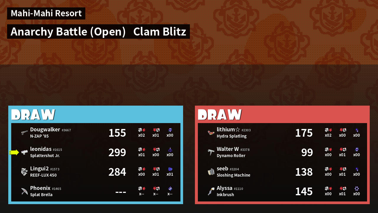 | Mode | Clam Blitz - Anarchy Battle (Open) | ||