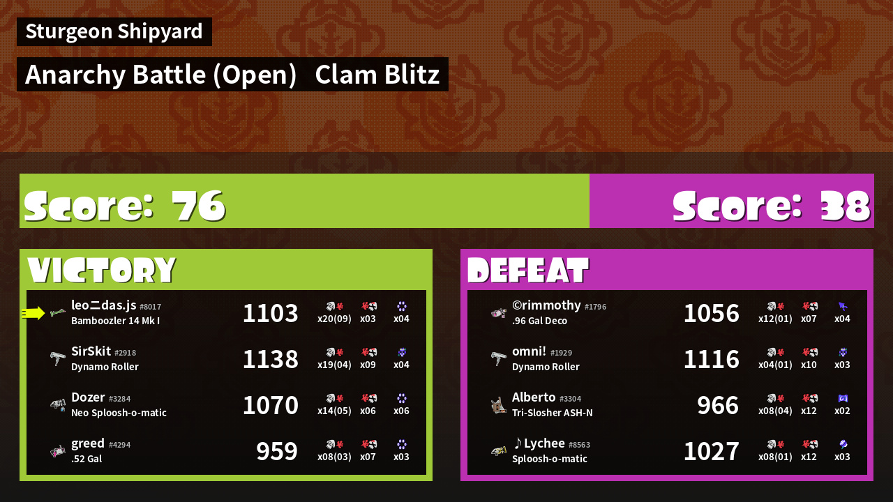 | Mode | Clam Blitz - Anarchy Battle (Open) | ||