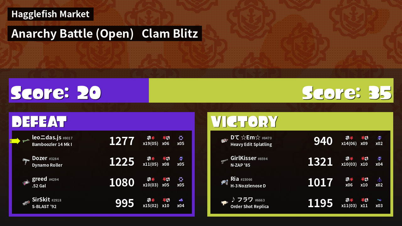 | Mode | Clam Blitz - Anarchy Battle (Open) | ||