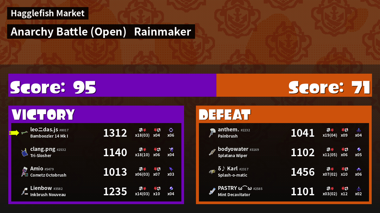 | Mode | Rainmaker - Anarchy Battle (Open) | ||