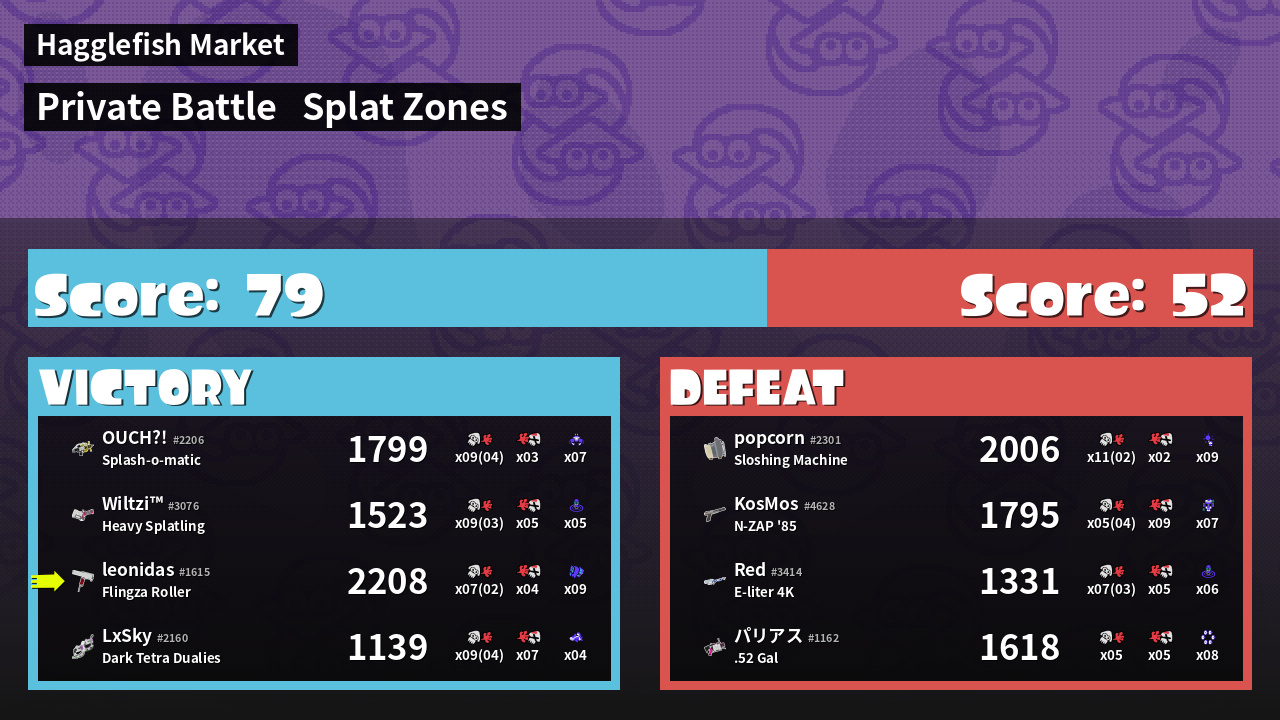 | Mode | Splat Zones - Private Battle | ||