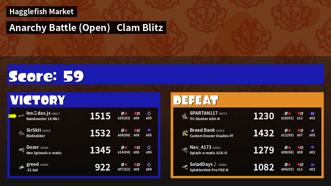 | Mode | Clam Blitz - Anarchy Battle (Open) | ||