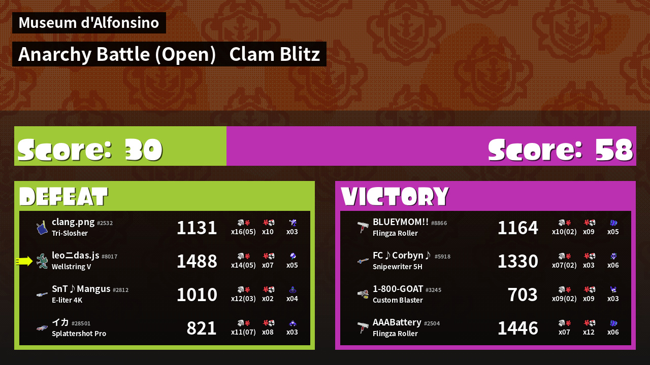| Mode | Clam Blitz - Anarchy Battle (Open) | ||