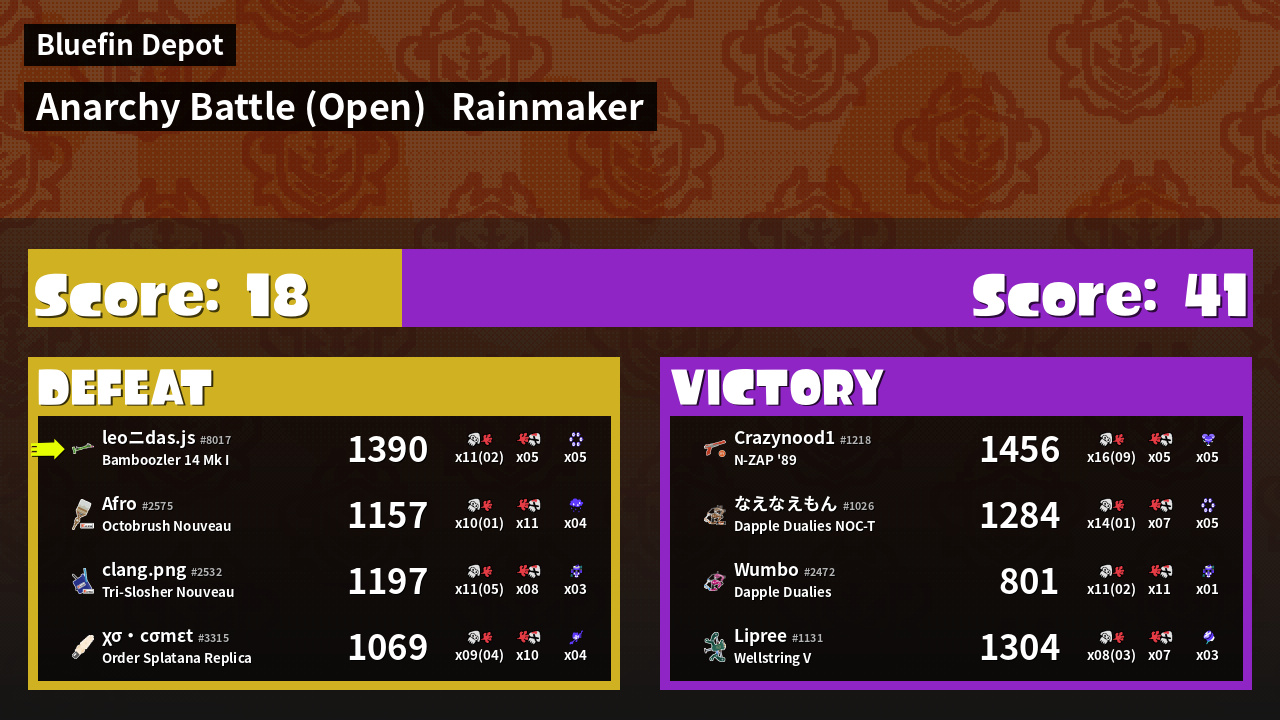 | Mode | Rainmaker - Anarchy Battle (Open) | ||