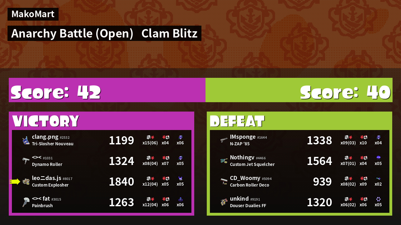 | Mode | Clam Blitz - Anarchy Battle (Open) | ||