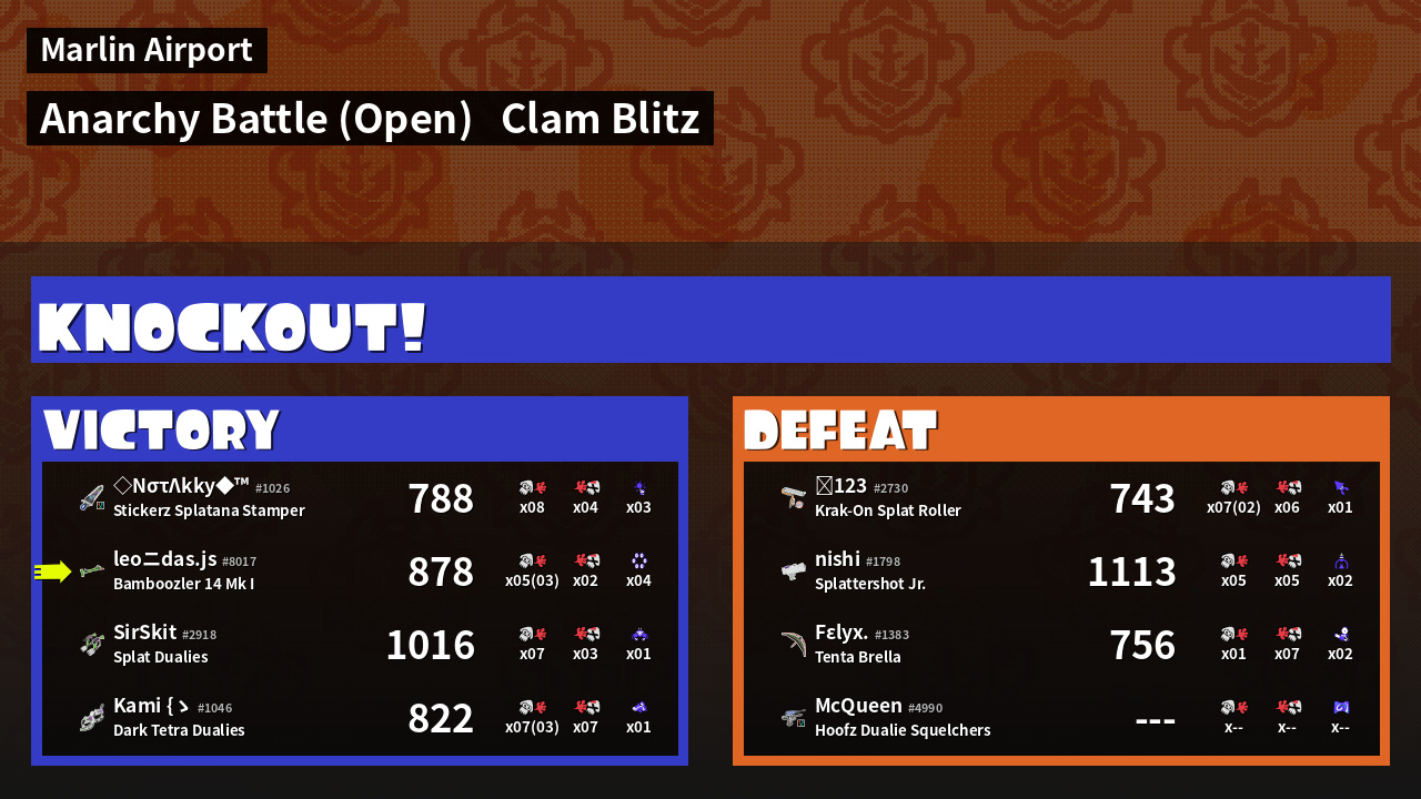 | Mode | Clam Blitz - Anarchy Battle (Open) | ||