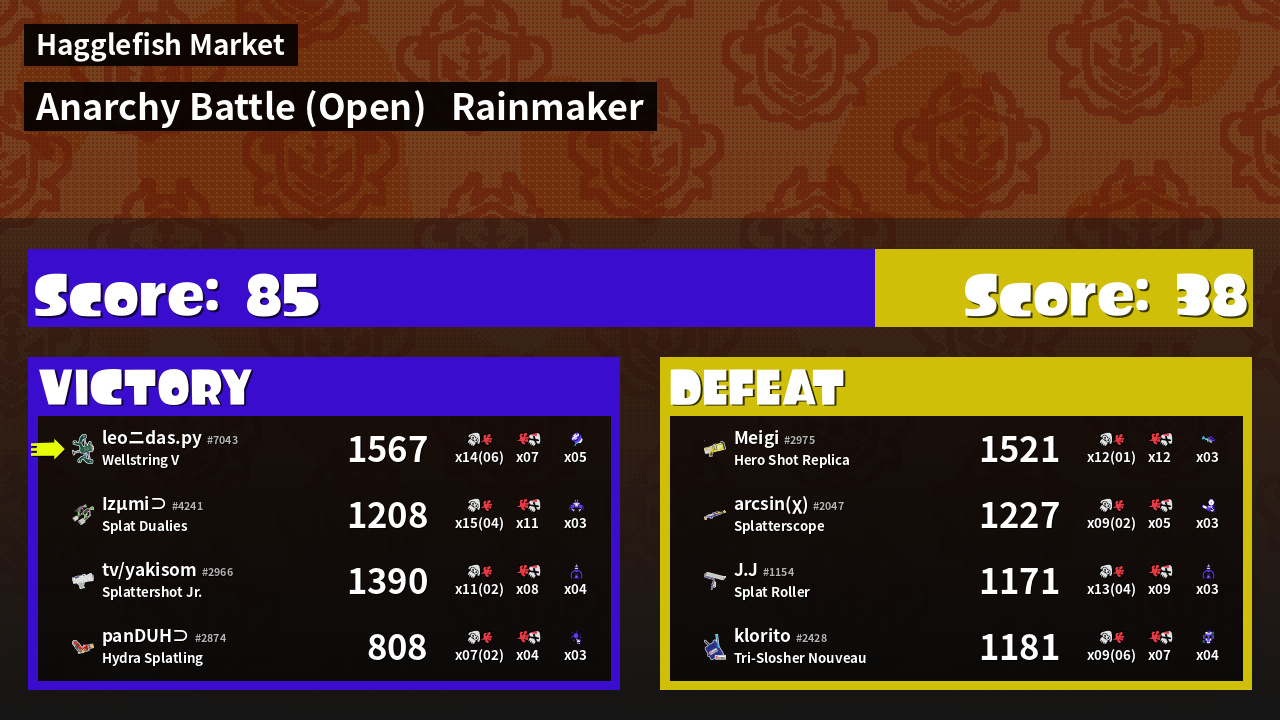 | Mode | Rainmaker - Anarchy Battle (Open) | ||
