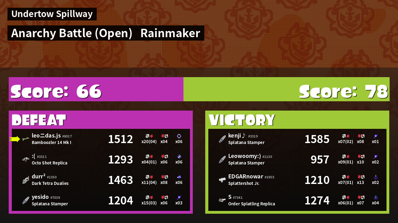 | Mode | Rainmaker - Anarchy Battle (Open) | ||