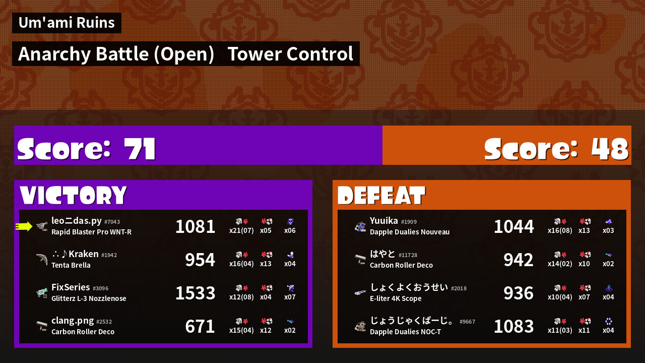 Kills / Deaths | 14 + 7 / 5 > Kill Ratio: 2.80 | ||