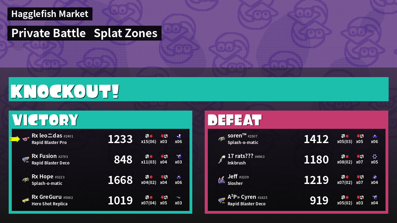 | Mode | Splat Zones - Private Battle | ||