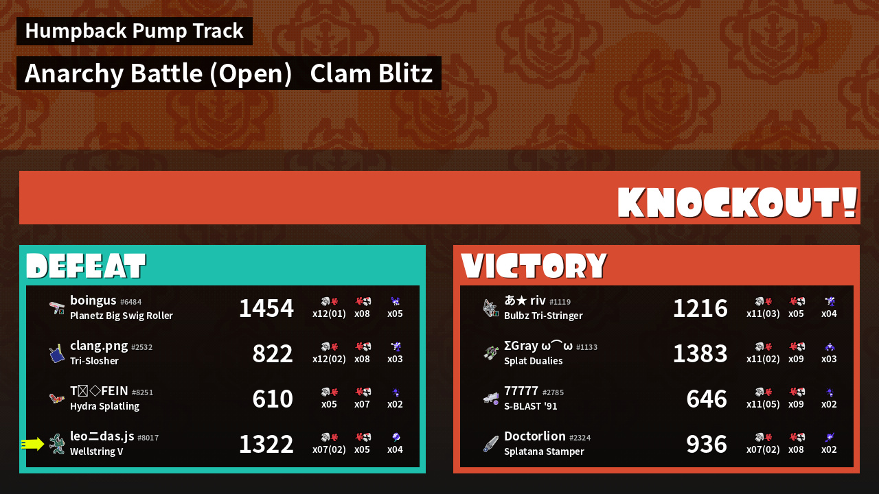 | Mode | Clam Blitz - Anarchy Battle (Open) | ||