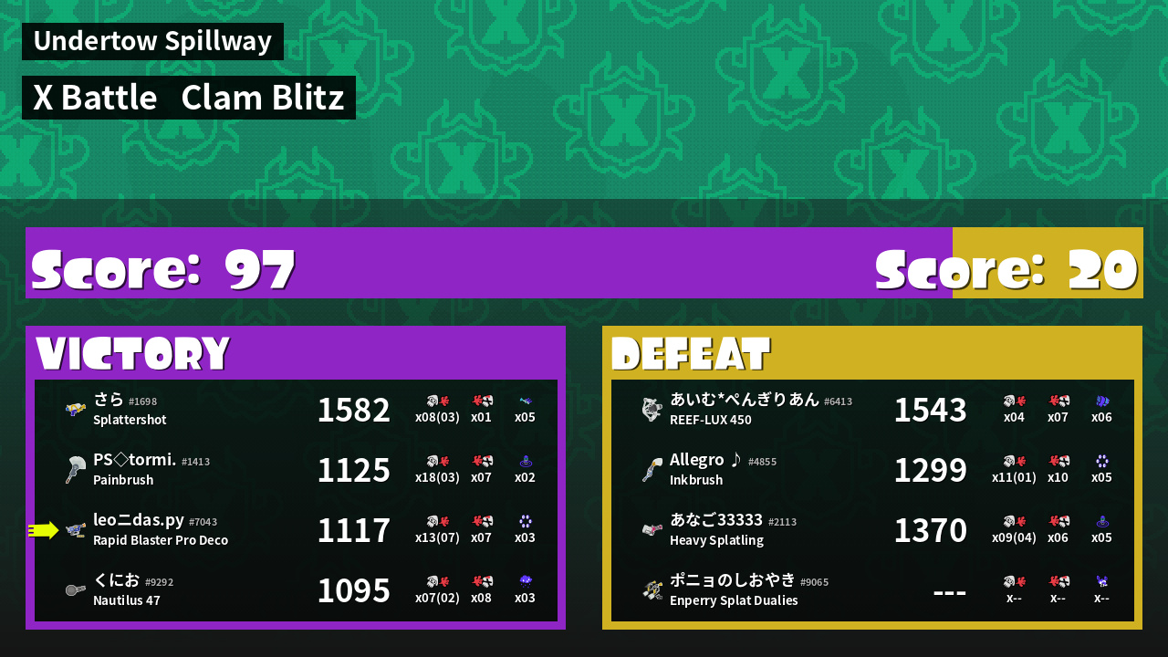 | Mode | Clam Blitz - X Battle | ||