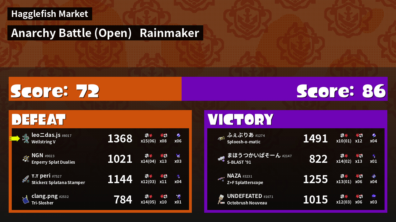 | Mode | Rainmaker - Anarchy Battle (Open) | ||