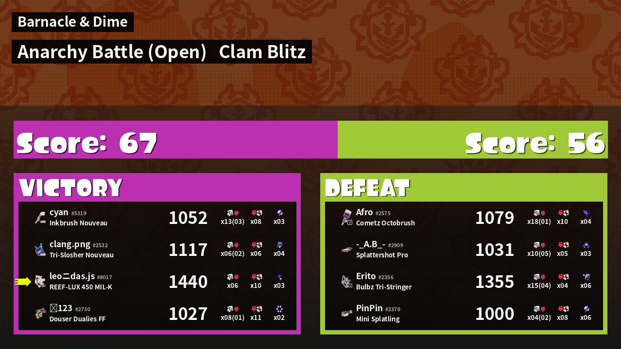| Mode | Clam Blitz - Anarchy Battle (Open) | ||
