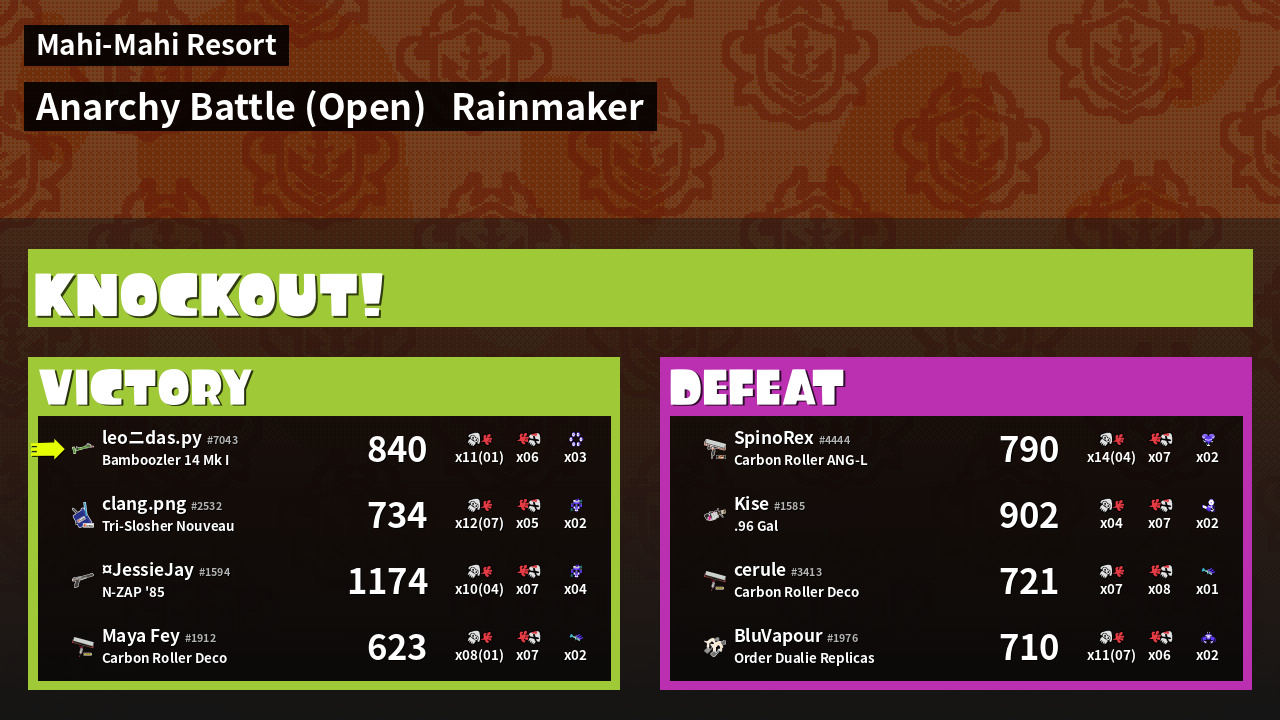 | Mode | Rainmaker - Anarchy Battle (Open) | ||