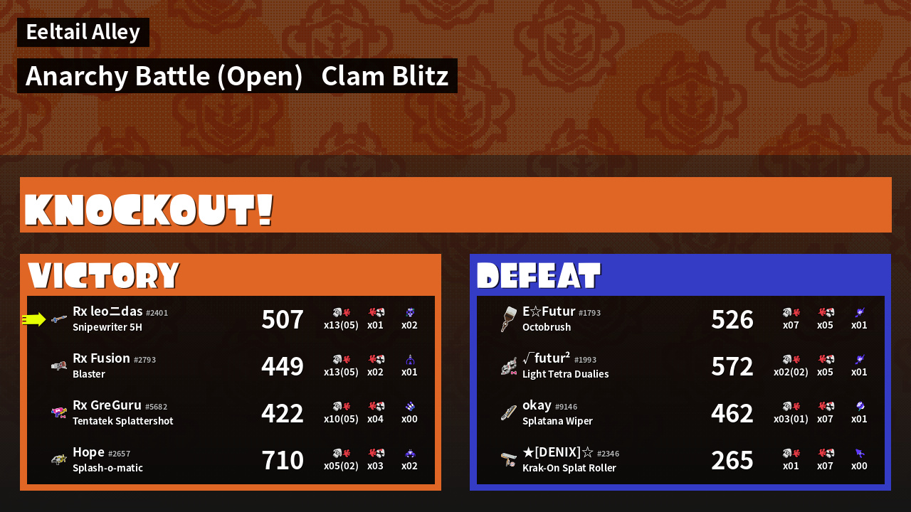 | Mode | Clam Blitz - Anarchy Battle (Open) | ||
