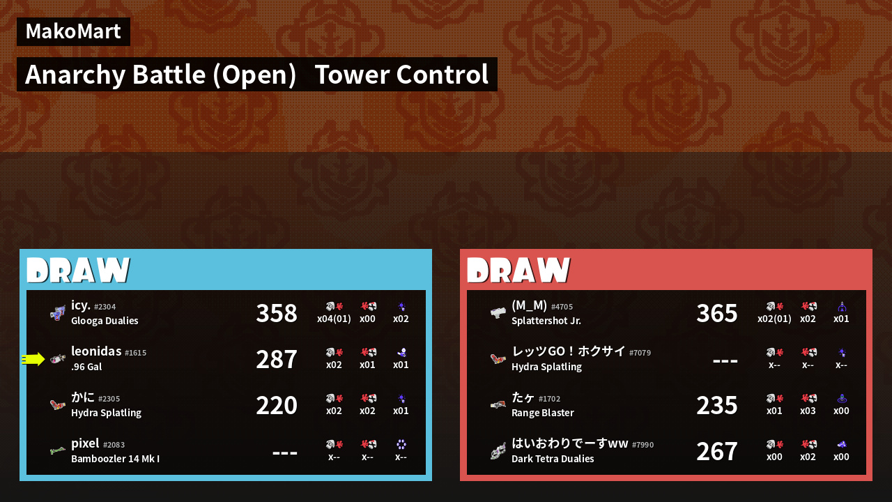 | Mode | Tower Control - Anarchy Battle (Open) | ||