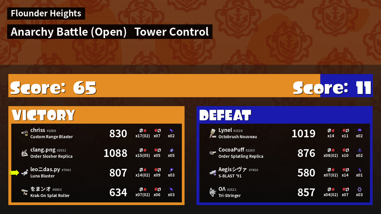 | Mode | Tower Control - Anarchy Battle (Open) | ||