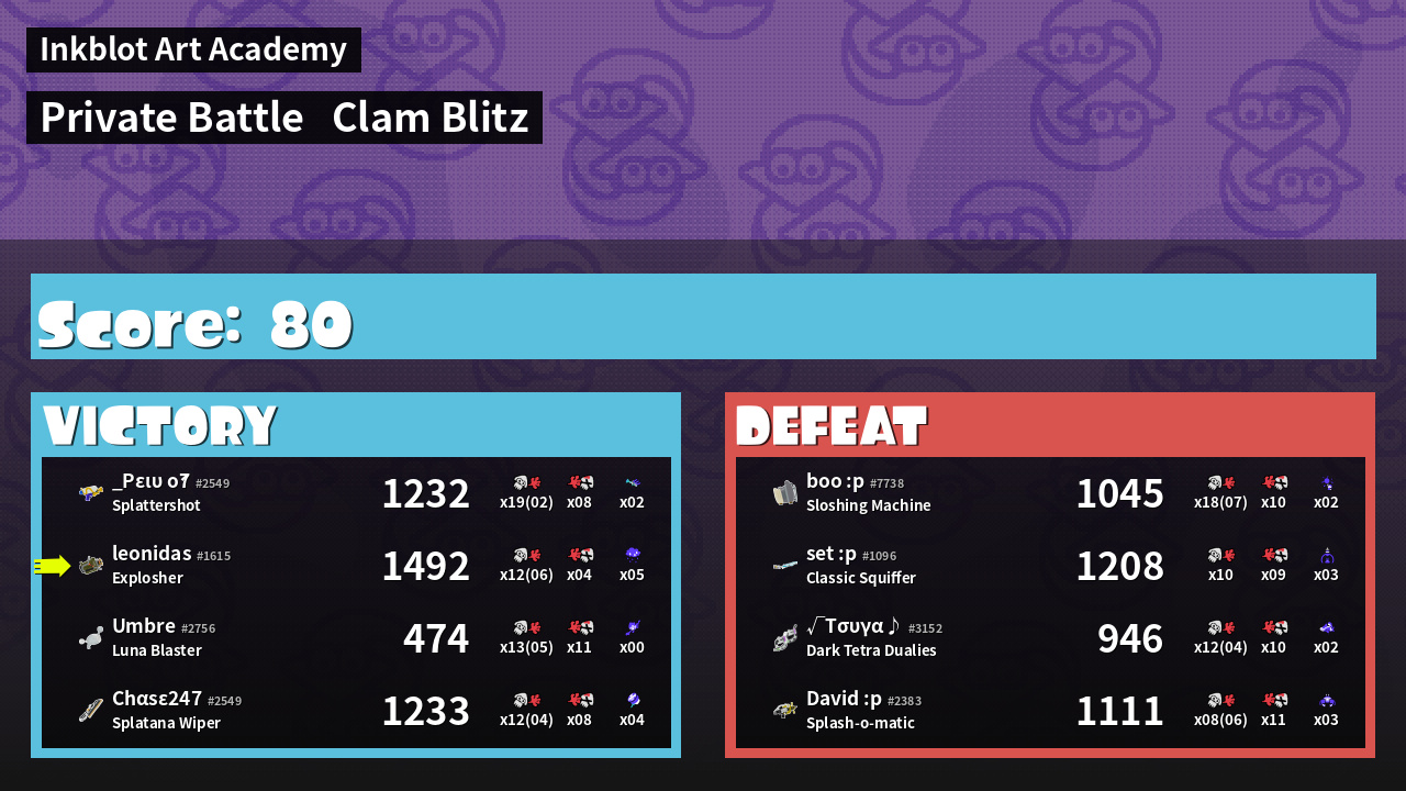| Mode | Clam Blitz - Private Battle | ||