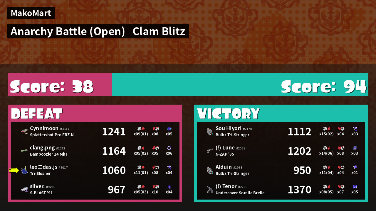 | Mode | Clam Blitz - Anarchy Battle (Open) | ||