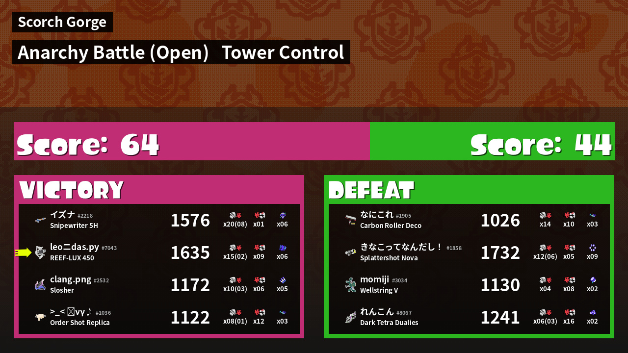 | Mode | Tower Control - Anarchy Battle (Open) | ||