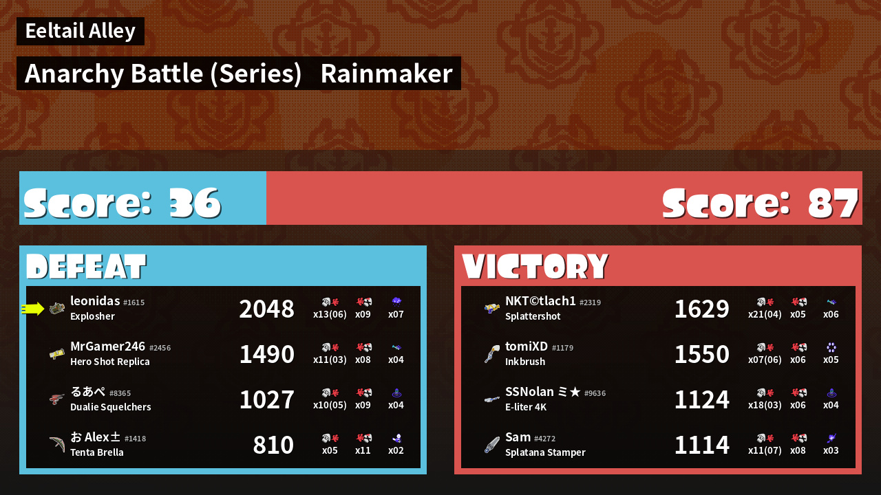 Name | Weapon | Inked | ![]() |