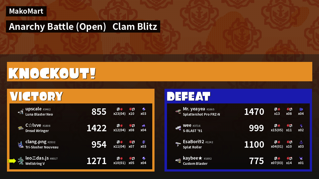 | Mode | Clam Blitz - Anarchy Battle (Open) | ||